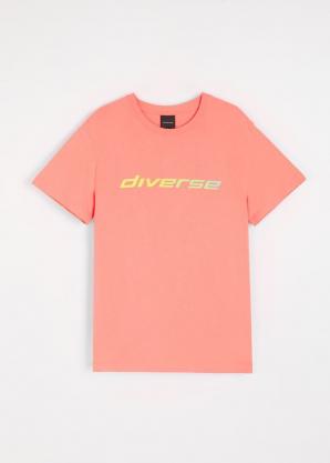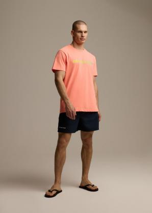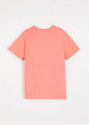 Bavlněné tričko s logem v neonovém zabarvení - korálová červeň