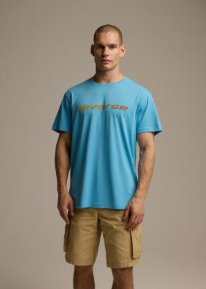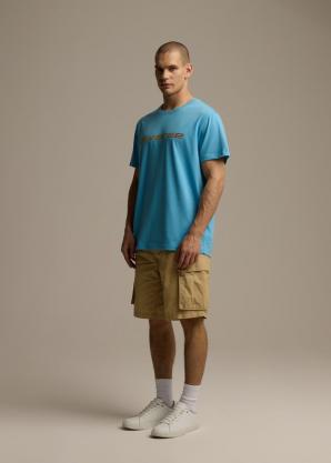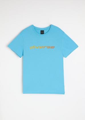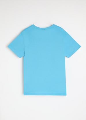 Bavlněné tričko s logem v neonovém zabarvení - světle modré