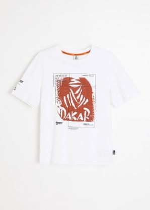 Pánské tričko s krátkým rukávem - grafika s logem DAKAR. - ozdobný štítek na boku, - pohodlný střih.