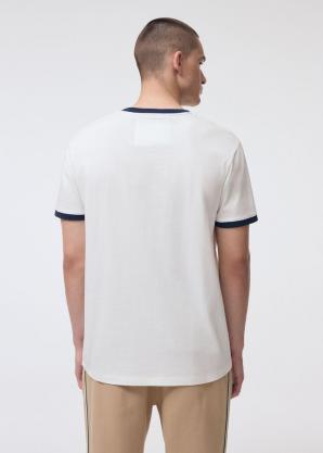 Pánské tričko - klasický střih s kontrastním lemováním, - kulatý výstřih s tmavým žebrovaným lemem, - krátké rukávy s barevnými akcenty, - decentní potisk loga na hrudi. Skvělá volba pro teplé jarní a letní dny - všestranné a snadno se kombinuje s různými styly.