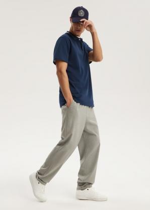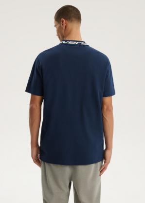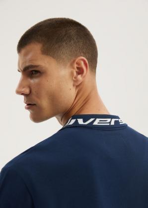 Bavlněné tričko s límečkem v tmavě modré barvě