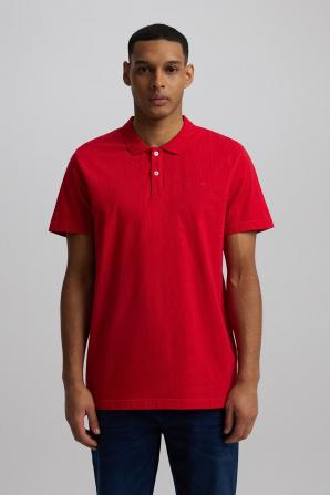 Bavlněné tričko s límečkem v červené barvě