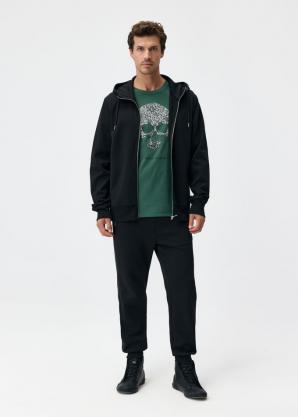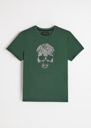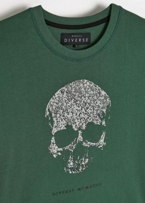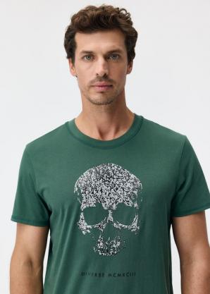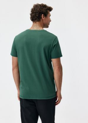 Zelené pánské tričko s potiskem, klasickým střihem a kulatým výstřihem. Vyrobeno z čisté bavlny, je ideální pro chladnější podzimní/zimní dny a dodá každému outfitu charakter.