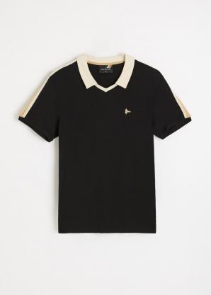 Pánské polo tričko - běžný střih, - kontrastní límec, - krátké rukávy s kontrastním pruhem, - logo na hrudi, - kontrastní pruhy, - 100% bavlna. Ideální pro každodenní nošení i neformální schůzky, kombinuje styl a pohodlí v jednom produktu.