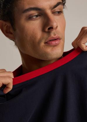 Pohodlná bavlna, ležérní styl pro každodenní nošení – směs klasického stylu a sportovní pohodlí. Kontrastní červený lem na výstřihu a rukávech. Decentní vyšívané logo na hrudi. Měkká, prodyšná bavlna zajišťuje celodenní pohodlí. Toto je vynikající volba pro muže, kteří si cení pohodlí, ležérního stylu a nadčasové všestrannosti.