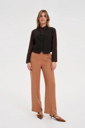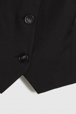 95% POLYESTER, 5% ELASTAN, PODŠÍVKA: 100% POLYESTER Tato černá vesta je perfektním doplňkem každodenních potřeb moderního šatníku. Její hladký, jednořadý střih a decentní knoflíky zdůrazňují její minimalistický styl, díky čemuž se budete cítit pohodlně a sebejistě bez ohledu na situaci. Lehká, měkká látka s podšívkou zajišťuje celodenní pohodlí, zatímco všestranný střih krásně tvaruje postavu a dodává vašemu outfitu nádech ženské elegance. Tato vesta je ideální pro rušný den v práci, setkání s přáteli nebo elegantní večerní vycházku. Skvěle vypadá v kombinaci s klasickou košilí, vašimi oblíbenými džínami, plisovanými kalhotami nebo pouzdrovou sukní. Je to nadčasový, ležérně elegantní kousek, který zdůrazňuje individuální styl a nabízí nekonečné možnosti pro vytvoření moderních a pohodlných outfitů pro každou příležitost.