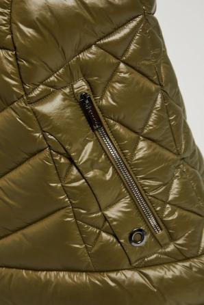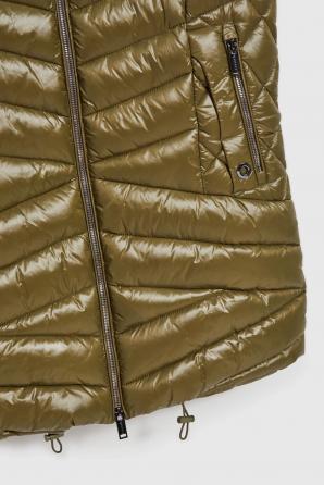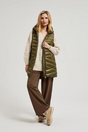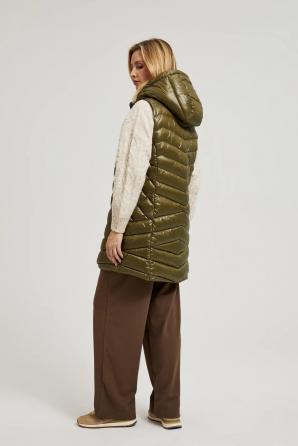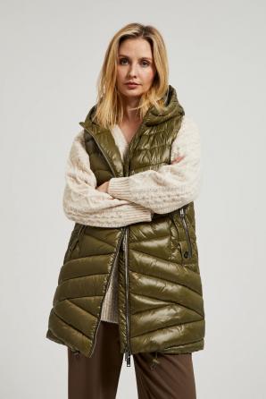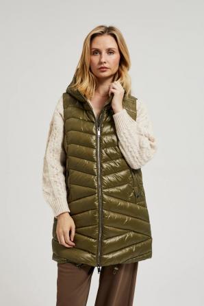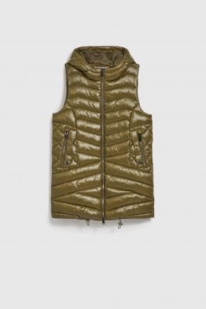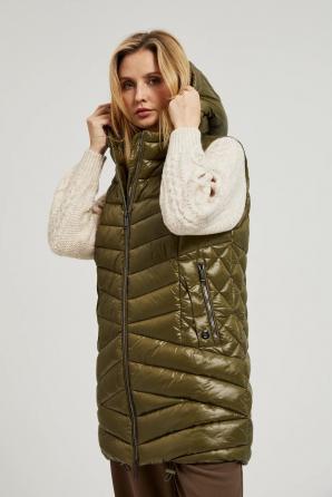 100% POLYAMIDE Dámská vesta je perfektní volbou pro chladnější dny. Vyrobeno z vysoce kvalitního polyamidu, zajišťujícího pohodlí při nošení a ochranu proti větru. Zateplené prošíváním a podšívkou, která dokonale izoluje tělo proti chladu. Navíc má praktické kapsy, které vám umožní schovat potřebné věci. Prošívaná vesta bez rukávů s kapucí a zapínáním na zip do půli stehen.