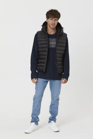 Pánská vesta - přiléhavý střih, - nastavitelná kapuce, - kapsy na zip, - zapínání na zip. Ideální jako vrchní vrstva na jarní procházky a letní večery.