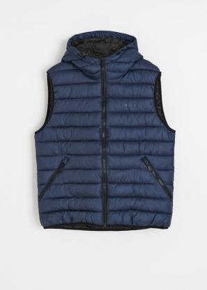 Pánská prošívaná vesta s kapsami v tmavě modré barvě