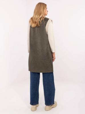 Khaki dlouhá vesta; imitace ovčí kůže